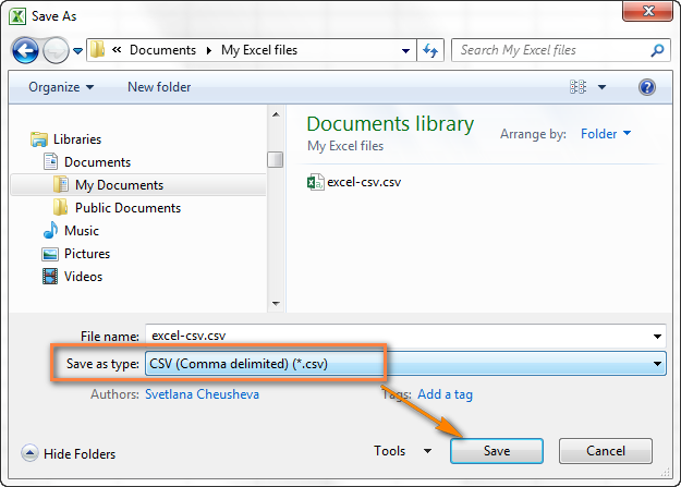 - Select “CSV (Comma Delimited)” in the “Save as Type” field