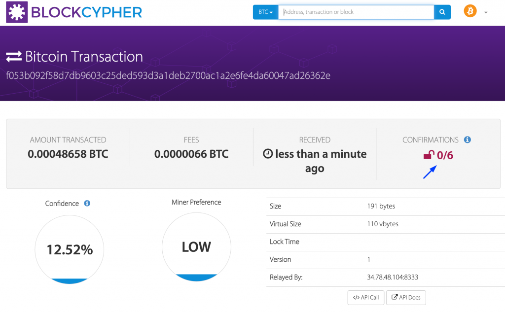 Your payment is not confirmed yet by the blockchain network. Crypto transactions need to have at least two confirmations to be considered as completed. Please wait and your payment will be confirmed soon and you will receive some emails once the payment is processed.