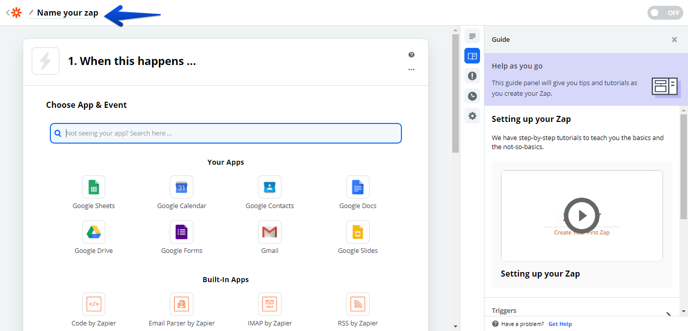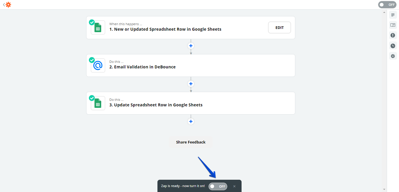 Step 17: At this point, we can activate our Zap. Tap the switch to activate your Zap.